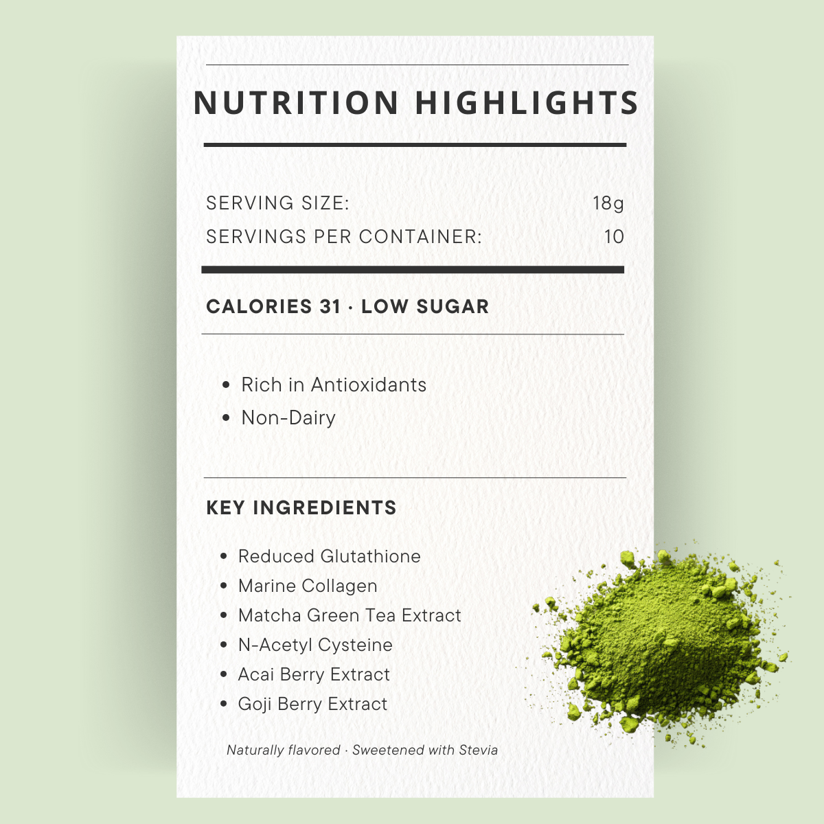 "Sip your matcha. Support your glow. Feel the energy."