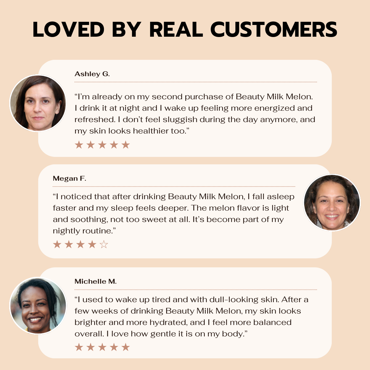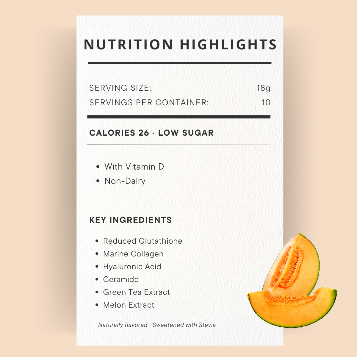 Beauty Milk is a smooth, creamy melon drink designed to support your natural beauty from the inside out. Each serving is infused with hydrolyzed marine collagen and a powerful blend of skin-loving nutrients to help nourish your glow — every single day.